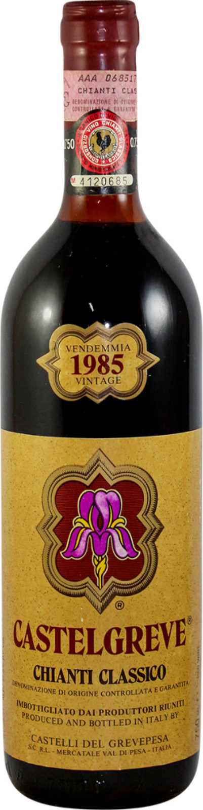 The 1985 Chianti from Castegreve offers a beautiful snapshot of classic Tuscan winemaking in one of the most celebrated vintages of the decade. Produced from the hills surrounding Greve in Chianti — a zone long admired for its balance of ripeness and freshness — this wine reflects the traditional Sangiovese style that defined the region before the modern renaissance of the 1990s.