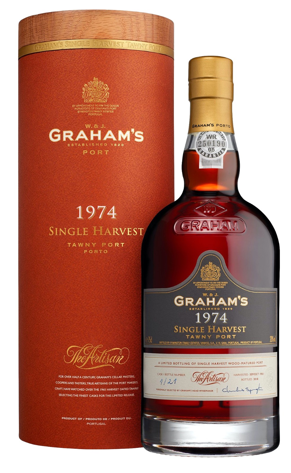 The 1974 Single Harvest Tawny Port is made from the very finest wines from the Graham’s vineyards. Graham's holds one of the most extensive reserves of very old cask aged Port of any producer. They include a collection of rare Single Harvest Ports. These are Ports from a single year which age to full maturity in seasoned oak casks and display the year of harvest on the label.