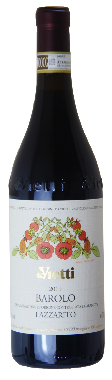 The grapes come from the MGA “Lazzarito” vineyard in the municipality of Serralunga d’Alba, a fabulous amphitheatre-shaped plot with a south-western exposure. The soil is rich in limestone and clay, and the altitude is between 260 and 390 m asl. The average age of the Guyot-cultivated vines is 42 years, and there is a density of around 4500 plants per hectare. The total area occupied by Vietti is around 2 hectares.